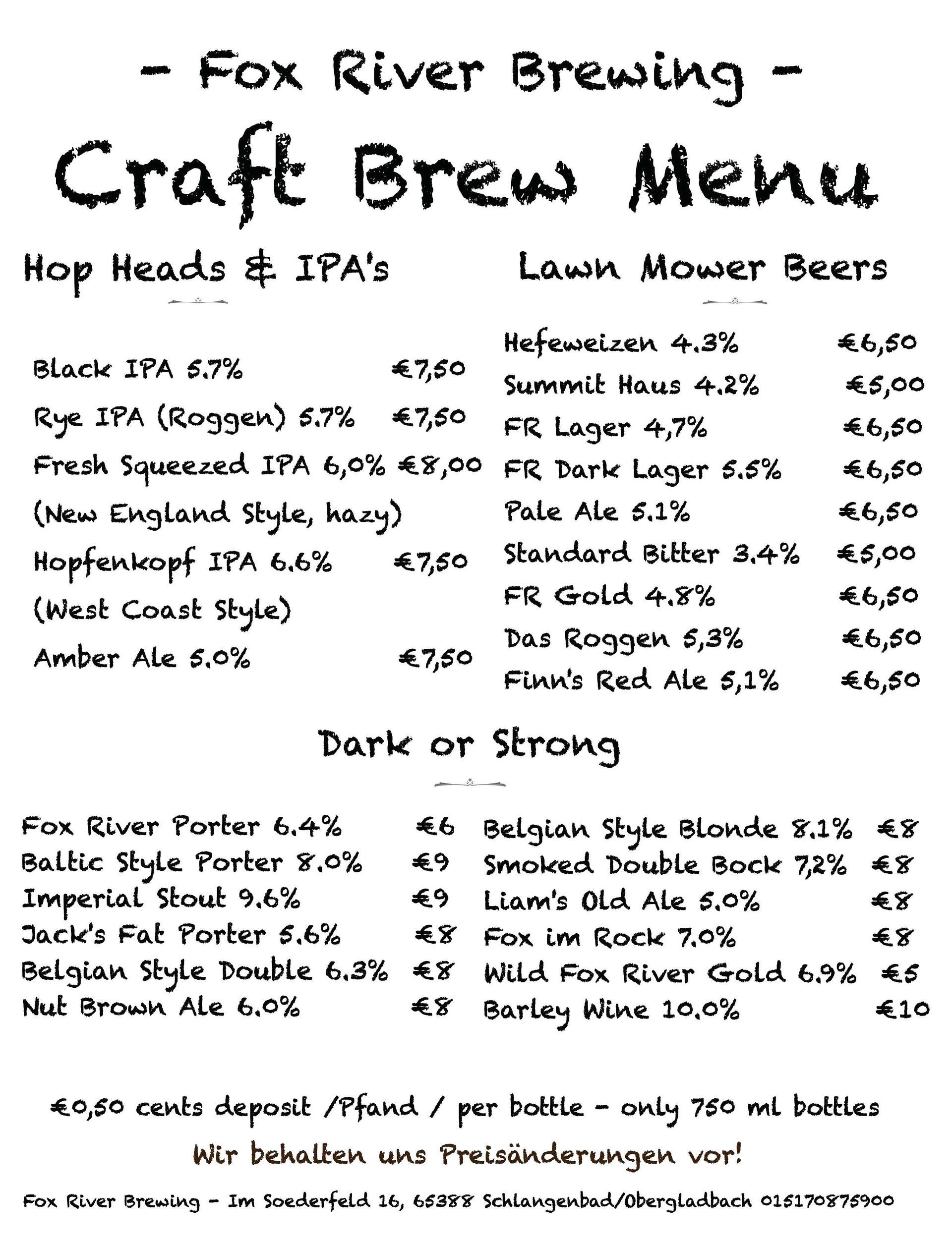 Dieses Bier ist nach unserem Sohn Finnegan benannt. Das Finnegan Red Ale hat einen mässigen Malzgeschmack und eine leichte Karamellsüssnote. Etwas geröstetes Gerstenmals verleiht diesem Bier die im Namen erwähnte rote Farbe. Es ist ein angenehmes "Brückenbier" für neue Craftbiertrinker, jedoch interessant genug für den fortgeschrittenen Craftbier Enthusiasten. Alk. 4.9 %Vol